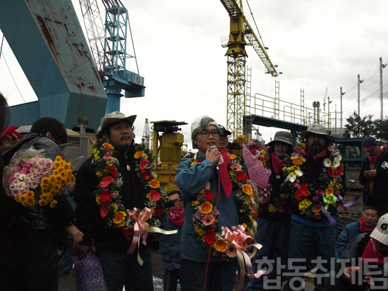 勝利だった。労使合意の内容は別にしても、3名の組合員の死をもたらした悲劇の85号クレーンから生きておりたこと、それだけでも韓進重工業の組合員たちには大きな勝利であった。