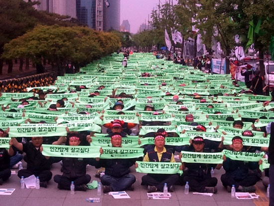 特殊雇用労働者として適用されてないので労働基本権争奪と建設現場の未払い根絶、標準契約書の定着、適正賃金の勝ち取りなど、対政府要求案を持ってゼネストと総力闘争に乗り出す計画だ。