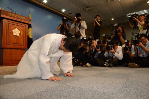 記者会見で涙を見せた姜代表はハンカチで涙をふきながら、切ない表情を隠せなかった。