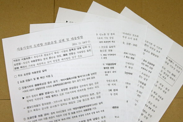 この文書はパク市長を「汎左派ベルト構築」 「ポピュリズム量産」の主役と見ている。 これに伴い「(パク市長を対象に)