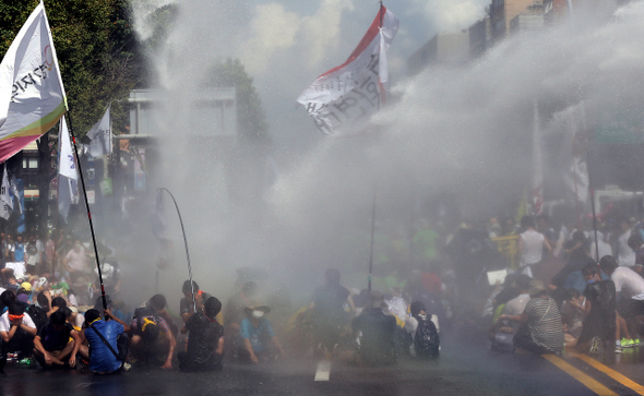 ソウル市内で警察が放水銃を撃って集会を鎮圧したのは、朴槿恵政府スタート以後はこれが初めてだ。