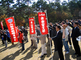 山梨県平和センターは11月12日(土)、「米軍の北富士演習場における実弾射撃訓練に抗議する集会」を開催しました。会場となった富士吉田市にある「諏訪の森自然公園」には、県内の労働組合を中心に約300人が参加しました。