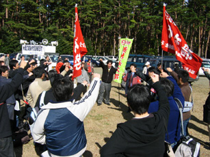最後に、米軍の撤退・北富士演習場の全面返還・平和利用を確認し、全水道委員長の上野さんの音頭で「団結がんばろう」を行い、締めくくりました。