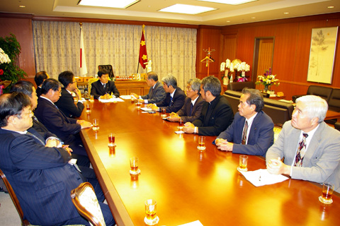 「先ごろ在日米軍基地再編に関する中間報告が発表され、3月には最終報告が行われると聞いています。本日は国会議員と共に、沖縄県民の思いを伝えにきました。
