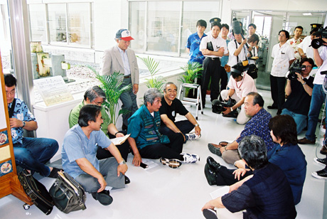 「三役以上との面会」を求めて、知事室階の廊下に座り込み。