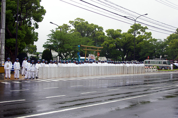 ●米軍佐世保基地正面ゲート前。機動隊がびっしりと張り付いている。