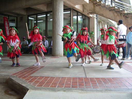 ●大宜味村・喜如嘉では保育園の子どもたちがエイサー踊りで出迎えてくれました。