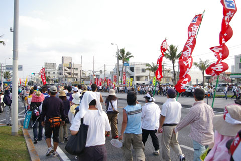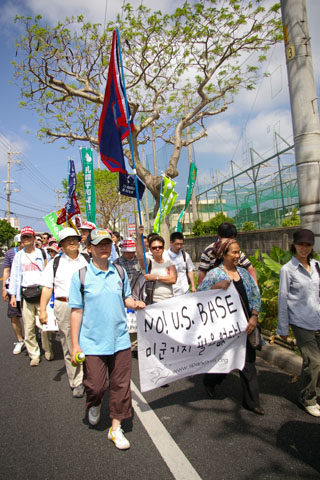 東コースは、普天間基地の代替基地が計画されている、名護市辺野古から出発しました。