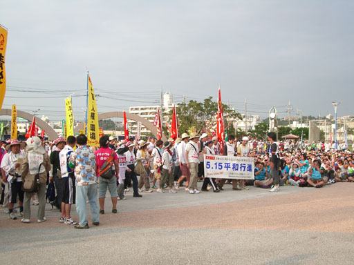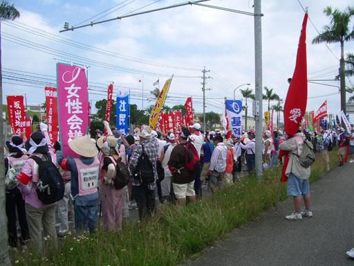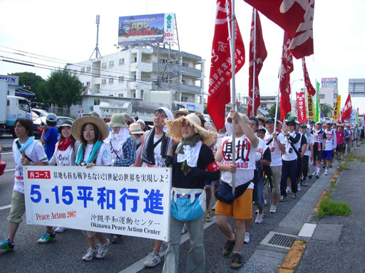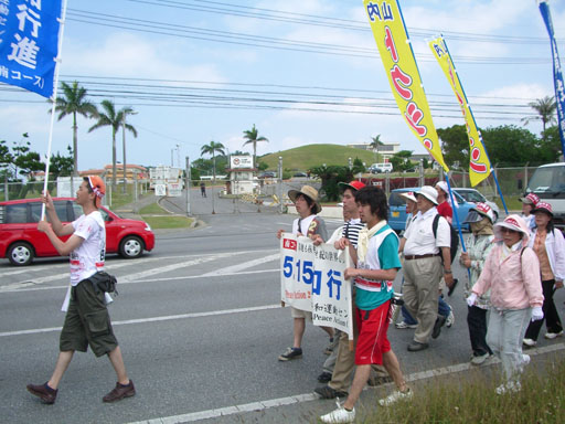 「平和行進を成功させたぞ! 嘉手納基地包囲を成功させるぞ!」
