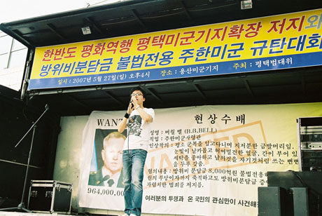 彼はピョンテクに住み込んで、農民たちの反基地運動を支援してきました。