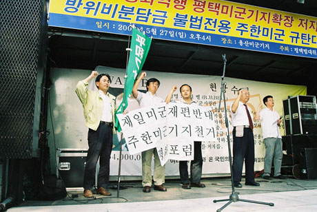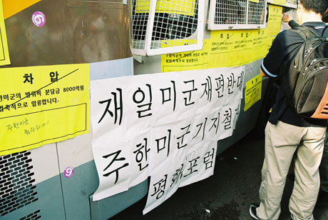日韓民衆連帯で、米国の覇権主義を阻止しよう。在韓・在日米軍基地を撤去しよう」
