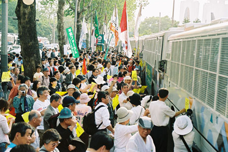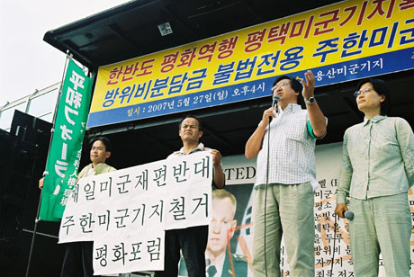 5月26日午後、ソウル中心部にある在韓米軍龍山基地前で、集会が開かれました。国際会議を終えた私たちも、集会に駆けつけました。