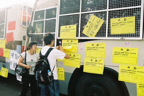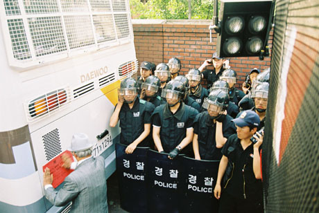 韓国の戦闘警察(機動隊)は徴兵制の一環のため、隊員たちは「孫のような」年。