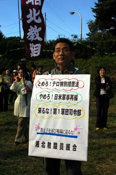 10月20日(土)14:00から、神奈川県座間市の座間公園で、神奈川平和運動センターなどが主催して「とめろ!テロ特別措置法 やめろ!日米軍事再編 来るな!第1軍団司令部」集会が開かれました。