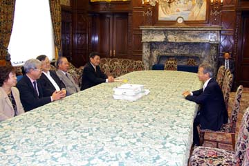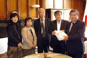 10月30日、平和フォーラムは国会を訪れ、衆議院副議長の横路孝弘さんと、参議院議長の江田五月さんに、「テロ特措法の廃止と海上自衛隊のインド洋からの撤退を求める緊急署名」を、提出しました。