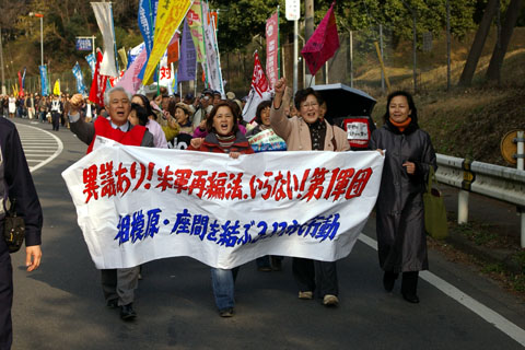 国民投票法が可決されれば、次は憲法改悪です。日本が米国の先頭に立って、戦争をする国になるのです。そのことを多くの国民に知ってもらう必要があります。米軍再編を断固阻止するために、頑張りましょう。