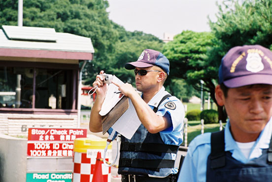 ●基地警備員が、挑発するように参加者の顔写真を撮影しています。