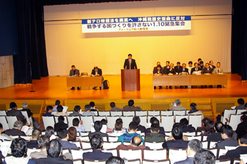 また、琉球大学教授の高嶋伸欣さんは、歴史教科書の中の沖縄戦と集団自決に関する記述への検定について、文部省が軍による強制を認めなかったことの問題点を指摘。来年の検定に向けた沖縄の取り組みを紹介しました。