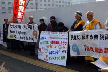衆議院本会議では、新テロ特措法案が再可決され成立してしまいましたが、参加者は今後も、日本の戦争協力に反対していくことを確認しました。