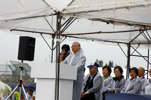 県議会各党や県出身国会議員、市町村長も多数出席しました。しかし、仲井真引多知事や自民党は欠席。発言に立った人々は、「この場に私たちの代弁者が来ていない」と、県知事の不参加を強く批判しました。