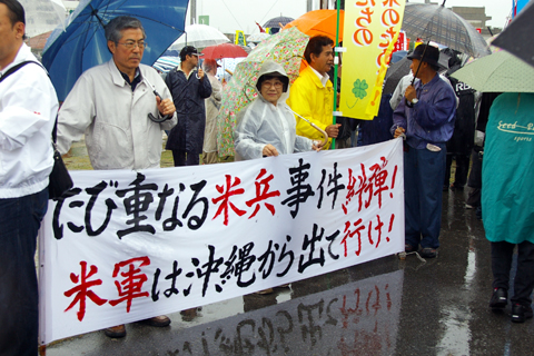 きょう、この雨の中を、皆さん一人一人が、大人として人間として、複雑な思いを胸にいだき、やむにやまれぬ思いで、集会に参加されているのではないかと思います。戦後60年が経つ中で「またか、またか」というほどに、米軍の事件が繰り返されました。その度に沖縄県民は、悲しみと苦しみの中から、強い怒りをもって米軍と日米両政府に抗議し、事件・事故の再発防止策を求めてきました。