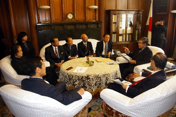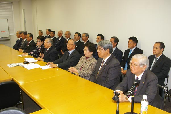 自民党への要請は、山崎拓衆議院議員と、個人事務所で会うことになりました。山崎議員は、党外交調査会長・沖縄振興委員長です。要請団は3人でしたが、それぞれの思いを強く訴えました。知花徳盛さん(沖縄県老人クラブ連合会常任理事)は、「私たちの方が負けてはいなかった」と話しました。