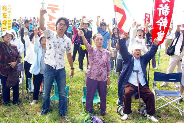 ●辺野古で闘うオジイ・オバアも、出発式に駆けつけてくれました。