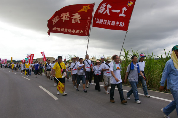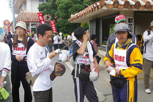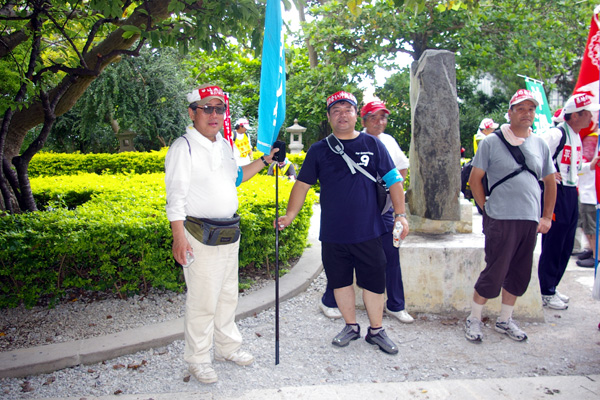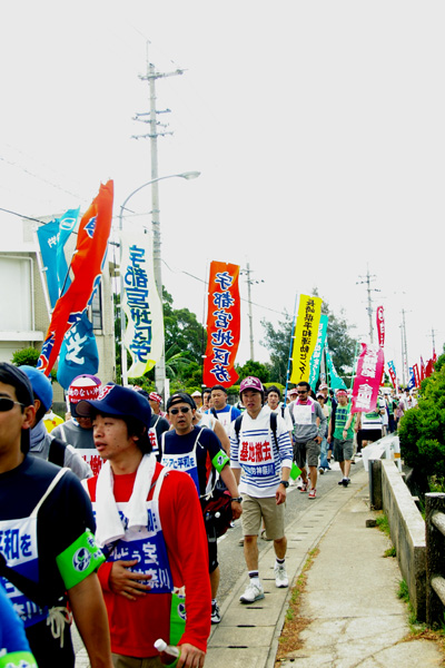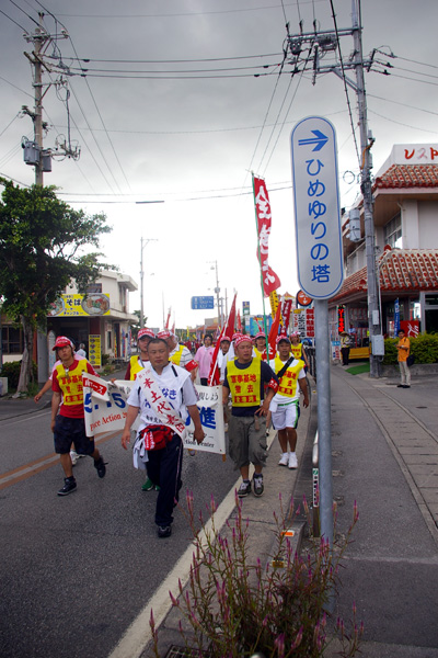 ●こちらは、那覇市役所前を出発した、南コースの皆さんです。ひめゆりの塔をめざして歩きます。