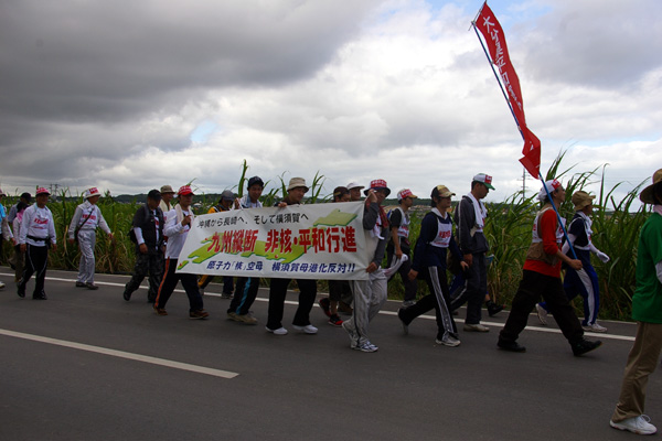 ●大分からの参加者。「九州縦断 非核・平和行進」の幕を持っての参加です。