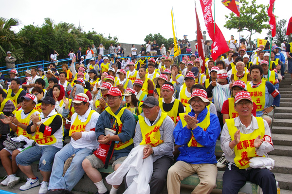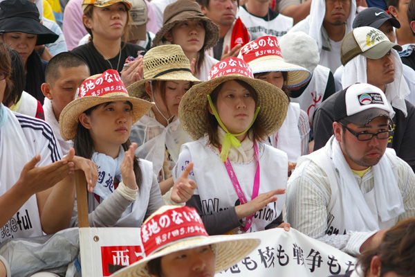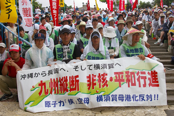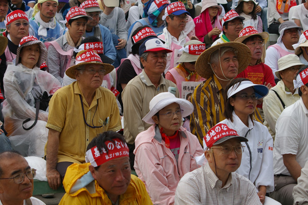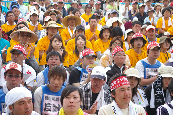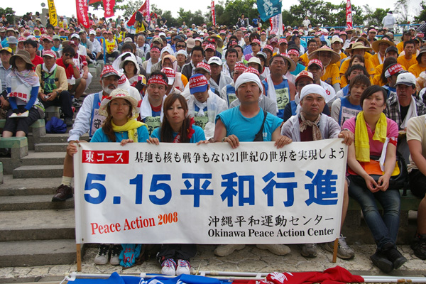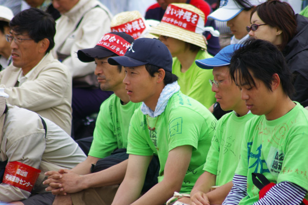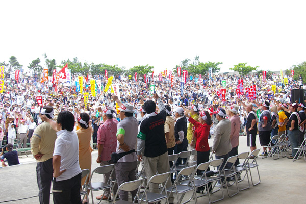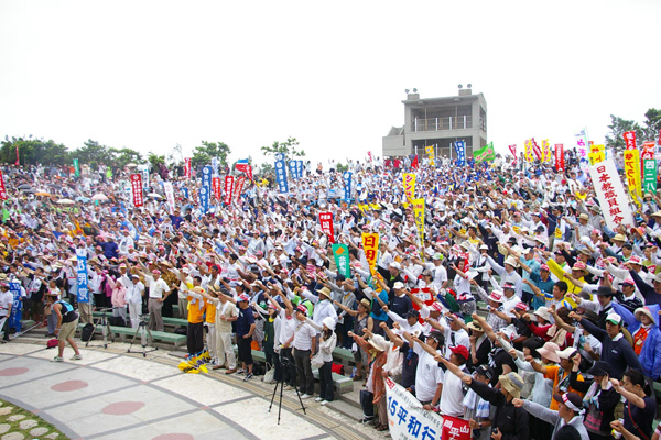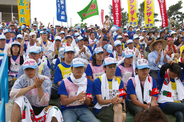 ●東・西・南の3コースを3日間かけて歩いてきた行進団が勢ぞろいして、県民大会は始まりました。