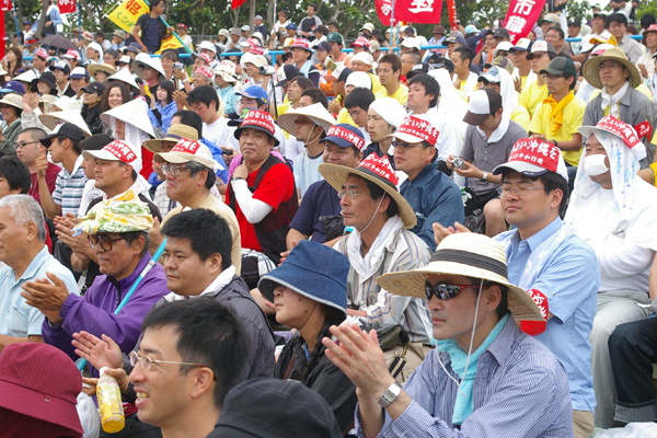 ●歴史教科書検定に抗議する県民大会と、米兵犯罪に抗議する県民大会の実行委員長を務めた玉寄哲永さんからも、連帯のあいさつをいただきました。