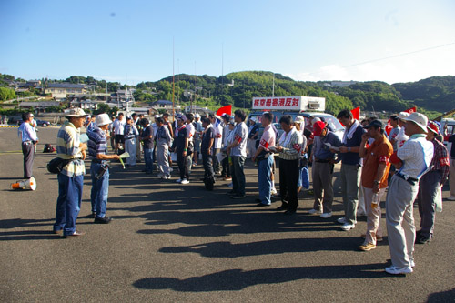 ●7月28日7時30分、港に集まった抗議船団。