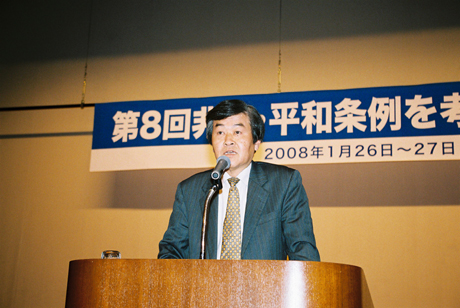こうした状況の中で、本集会が開催をされるとこでございます。本日はシンポジウム・講演・3人の現地報告、明日は、会場を田町の交通会館に変りまして3つの分科会での論議を予定しております。盛りだくさんの内容ではございますが、是非、地域から、自治体から平和を作るということで、活発な論議と集会全体へのご協力をお願いしたいと思います。