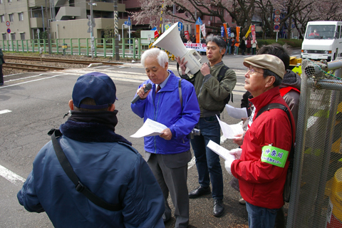 いま各国の資本や政府の側は、戦争で不況を取り戻そうとしています。そうした戦争政策を許せません。北朝鮮のロケット発射にへの対応などは、戦争と「紙一重」ではないでしょうか。米軍は、厚木基地に新たなヘリ部隊を配備し、相模総合補給廠には戦闘指揮訓練センターを建設しようとしています。軍事化の進行を許すわけにはいきません。