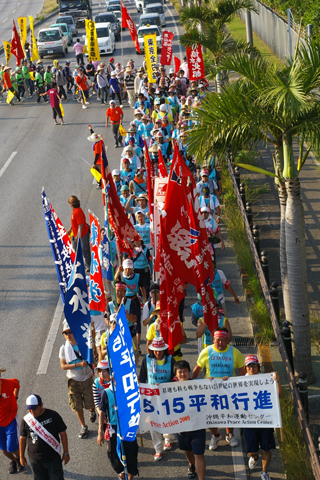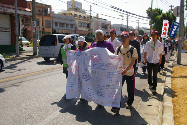 戦後64年、復帰から37年がたちました。昨日から平和行進に参加しているみなさん、沖縄を歩いて、どのように感じたでしょうか。