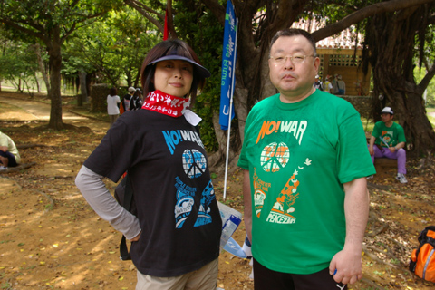 平和行進には、そろいのTシャツで来る団体、お手製のゼッケンをつける団体など、さまざまです。