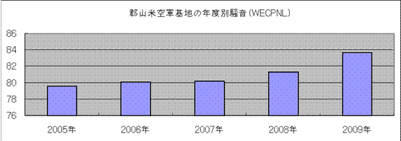 <表3.郡山米空軍基地の年度別騒音>*環境部。2009年騒音測定値の1/4まで公開