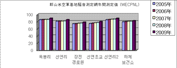 群山基地から発生する騒音の場合、騒音の原因である戦闘機の特性と軍事訓練の方法、時間などによってその程度が変わる。