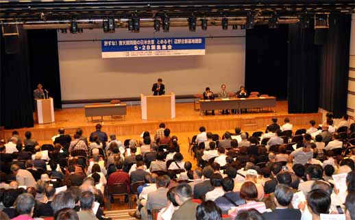 集会動員の発文書は5月24日であり、準備期間がわずか4日しかありませんでした。しかし、この日が日米共同声明の発表と、鳩山内閣の閣議決定に重なったこともあり、集会には実数で550人を越える人々が集まりました。