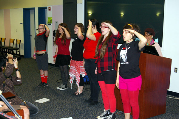 ●会議の合間に行われた、軍事主義反対のファッションショーです。