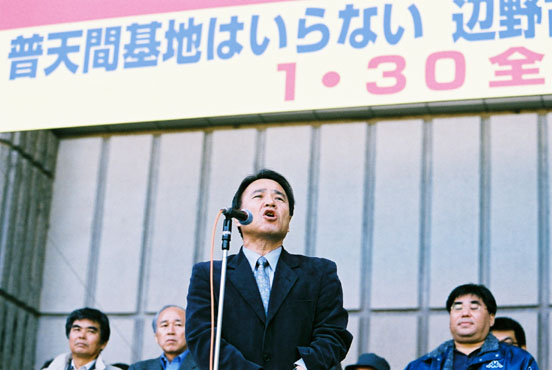 沖縄は、歴史の中で翻弄され続けてきました。薩摩藩に、明治維新政府に、戦争に、アメリカに、そして今、全国最低水準の県民所得、最高水準の失業率。きびしい生活の中で沖縄県民は、名護の市民は、辺野古の住民は、いろいろな意見と住民相互の感情を乗り越えて、基地はいらないとの強い意志を示しました。新しい時代を沖縄から開こうとする皆さんの思いに、私たちは感謝し、連帯し、そして私たちも新しい時代に歩みだそうではありませんか。