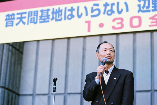 皆さん、この13年の闘い。それから、この1年の闘いで絶対に決着をつけたいと思っています。今、沖縄では自民党の皆さんですら、「県外移設」と言っている。そうすると、今回の市長選挙に勝って、仲井真知事はどうするのでしょうか。仲井真知事は、「名護市長が辺野古移設を言っているから私も移設」と言っているのです。そうすると知事は市長が建設反対といえば、彼は変わるということです。そういう闘いを作り上げた訳です。これから私たちは辺野古の基地をつくらせないと同時に、県内移設は絶対ダメだというそういう闘いを現政権に突きつけていきたいと思います。