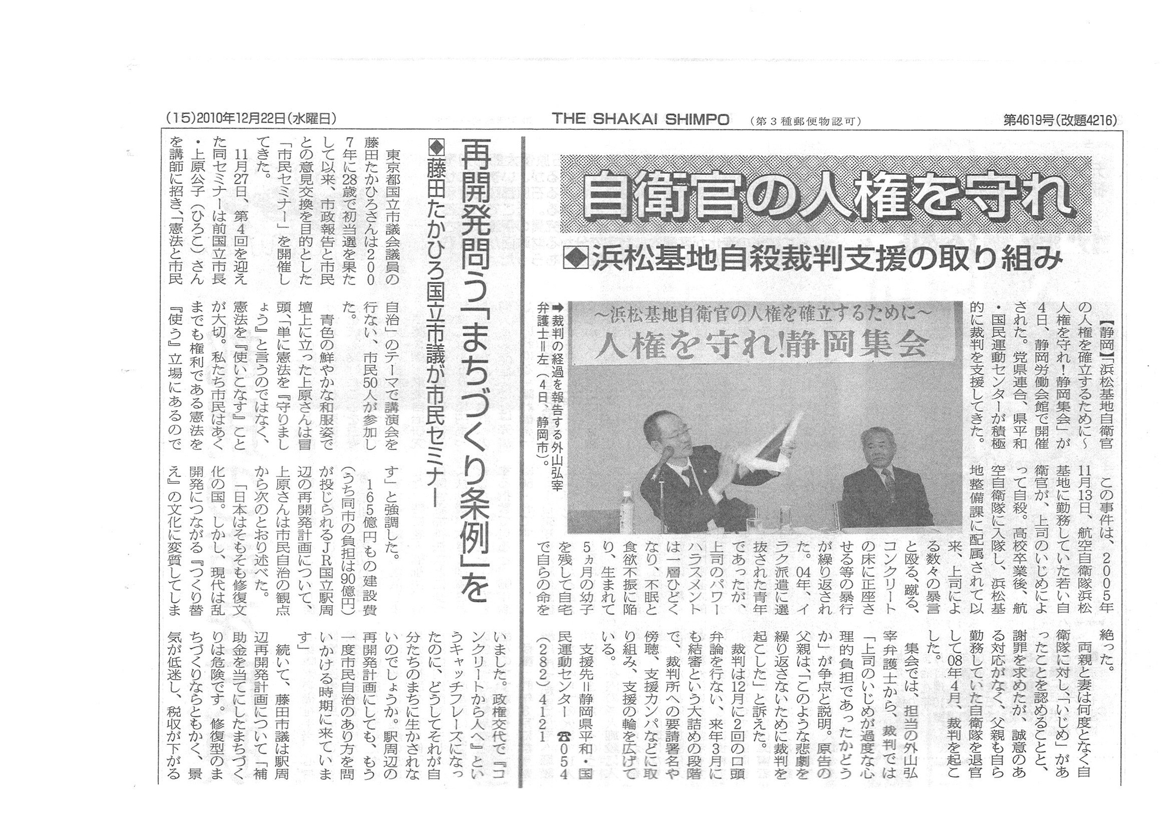 A社会新報「浜松基地自殺裁判支援の取り組み」