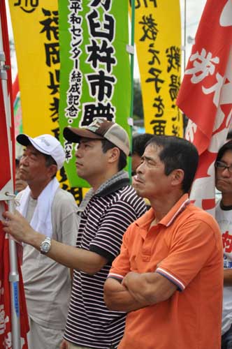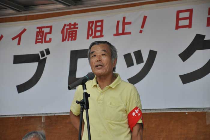 崎山嗣幸沖縄平和運動センター議長は、新型輸送機MV22オスプレイの配備計画に対し、島を挙げて反対している状況を説明。9月に沖縄で開催する県民集会への連帯を呼び掛けた。
