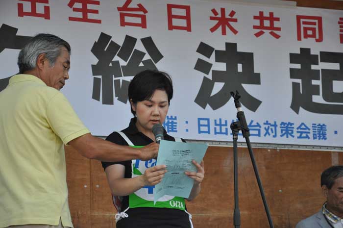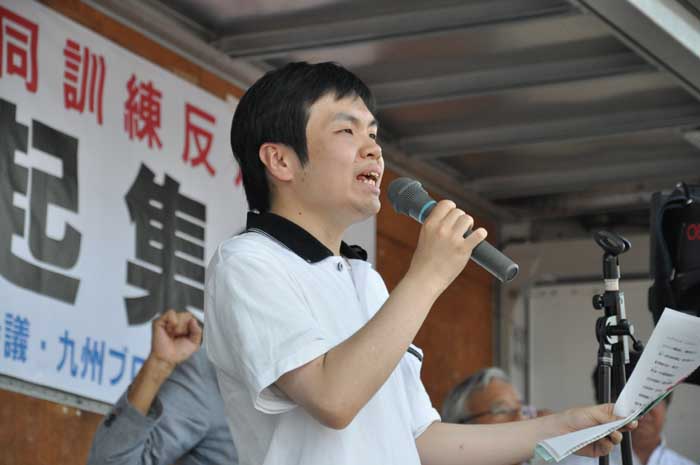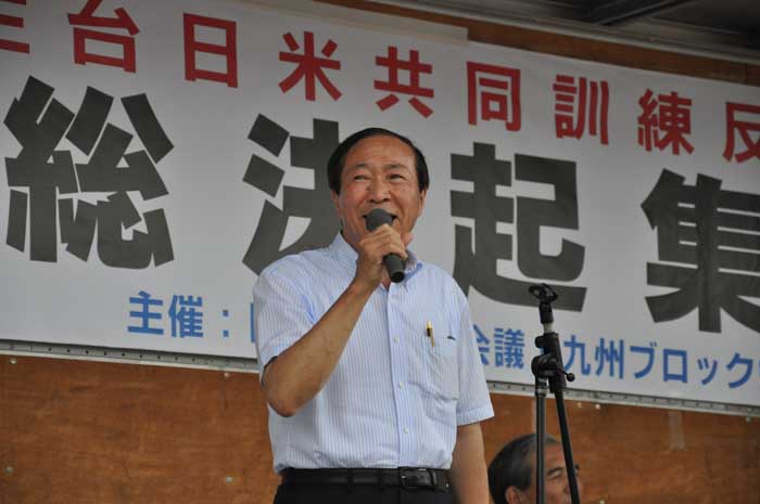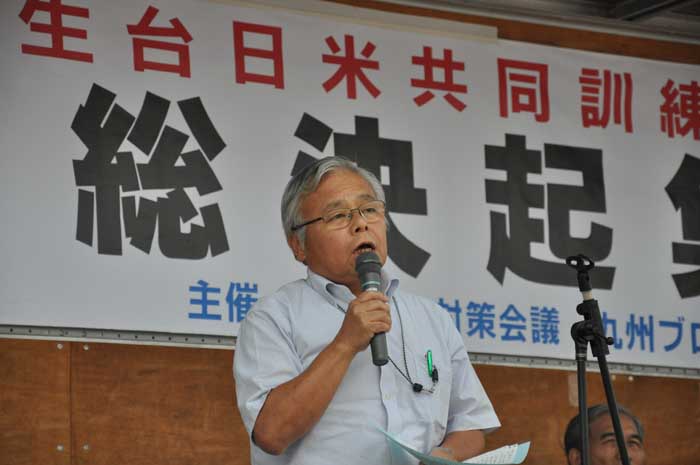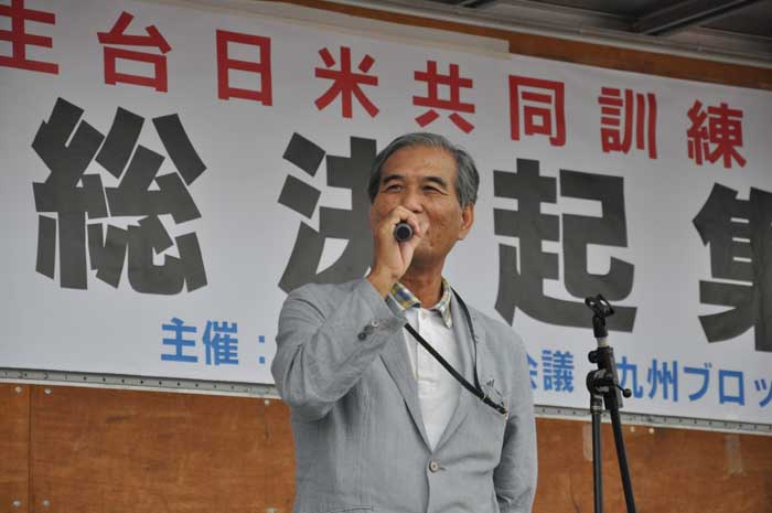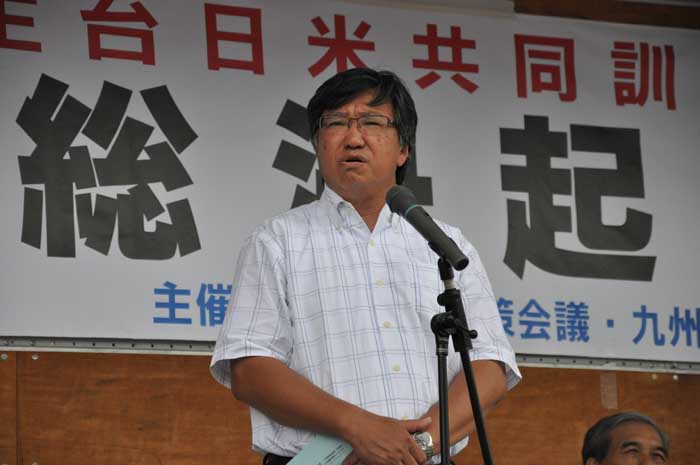 日出生台対策会議の内田淳一議長が「日米共同訓練の恒常化を許すことはできない。また最も危険といわれる新型輸送機・オスプレイの沖縄配備を認めることはできない」と訴えました。