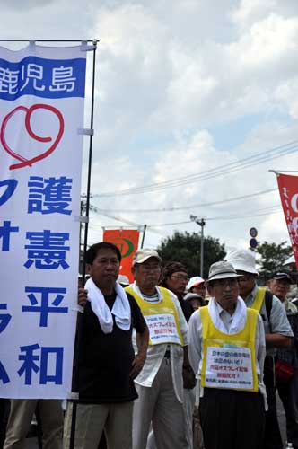| 「オスプレイ沖縄配備阻止!」「日出生台日米共同訓練反対!」 九州ブロック総決起集会 ●2012年8月18日(土)13:00~ ●大分県玖珠町 / 日出生台演習場ゲート前 ●玖珠川河川敷には九州各県から2000人を超える人々が集まりました。 『「オスプレイ沖縄配備阻止!」「日出生台日米共同訓練反対!」九州ブロック集会』が8月18日午後、大分県玖珠町の玖珠川河川敷で開かれました。主催は日出生台対策会議と九州ブロック労組連絡会議です。集会には地元大分県をはじめとして九州各県から、2000人を超える人々が集まりました。 ●司会 河野泰博さん(大分県平和運動センター事務局長) 集会は河野さんの司会で始まりました。河野さんは9月9日には沖縄県民大会が開かれる。九州各県からも積極的に参加しよう。日米安保破棄を実現しようと、力強く訴えました。 ●主催者あいさつ 内田淳一さん(日出生台対策会議議長) 政権交代から、まもなく3年が経とうとしています。自民党政権に代わって誕生した民主党政権に対して、私たちは大きな期待を持ったことは事実であります。 しかし、そのことごとくが裏切られ、いまや失望の中におかれていると言っても過言ではありません。 そうした中で特に目に余るのが、アメリカ追従外交だと考えています。中でも防衛問題は、アメリカのいいなりです。日本の主権は、いったいどこにあるのでしょうか。野田総理や森本防衛大臣の言動を見るにつけ、聞くにつけ、そう感じているのは皆さんも同じではないでしょうか。 その象徴の一つとして、日米共同訓練が明日から日出生台で行われることになりました。日出生台は毎年毎年、海兵隊による155ミリりゅう弾砲の演習が行われています。5年1回、海兵隊が演習をしない年がありますが、今年がその年に当たります。ところがそこに、共同訓練が入って来ました。今回で5回目です。 今回の演習の内容は何か、どれだけの兵員が来るのか、いつ装備が送られてくるのか、兵員はどのようなルートで日出生台に来るのか、全てのことが公開されていません。未だかつてない情報制限であります。このように秘密裏に演習が行われています。 日出生台を沖縄に続く基地にしないために、これまで行動をしてきました。そしてまた情報公開を求めてきました。地域住民の安心・安全を守るために要求してきました。しかし我々の要求を、防衛省・防衛局は、聞くだけで何も進展がありません。しかし、こうして声を上げ続けることが、何としても必要であると思います。 日出生台はいま、緑にあふれています。農業に携わる皆さんは、日出生台で牧草を刈り、牛を放牧して生活をしています。最も大切な時期に、なぜ演習を行うのか。何も回答は出されていません。 オスプレイの配備の問題も、連日報道で伝えられています。既に岩国に機体が搬入され整備されて、政府のいうことにはまもなく、沖縄の普天間基地に配備すると言うことであります。沖縄県民の皆さんが、どういう思いでこの報道を見ているのでしょうか。察するに余りあります。 私たちは、世界で最も危険な軍用機であるオスプレイの配備を認めることはできません。オスプレイが配備されると、岩国基地に飛んできて、そこから全国6ルートで演習すると言われています。福岡・熊本・宮崎・大分を結ぶイエロールートでも、夜間飛行訓練や低空飛行訓練が行われるようです。このような危険なオスプレイを、私たちの空に、飛ばすわけにはいかないのであります。 こうした厳しい事態を受け止めて、何としてもこの2つの問題に対していきたいと思います。 わが国は国民の思いとは異なる方向に歩みを進めています。憲法を変えて、軍備を増強しても、平和を守ることはできません。私たちはこうした動きに、断固抗議するために、強い怒りを込めて本日の集会を開催したのです。思いを共有し、闘いを拡げることになればと主催者として決意するところです。がんばりましょう。 ●主催者あいさつ 梶原正実さん(九州ブロック労組連絡会議代表) 九州各県から、また大分県内から結集した皆さん。大変お疲れ様です。 以前、玖珠町での反対集会に来た時に、色々な方からお話を伺いました。農業についてもお聞きしました。なぜこの大切な日出生台に米軍が来て演習をするのかというお話でした。 ところが今回は米軍だけではありません。自衛隊もやってきて、日米合同演習をやる。軍事訓練をやる。いま話がありましたが、牧畜をされている方たちには、大切な時期です。その住民の生活を守らないで、どこに向いて軍事訓練を行おうというのでしょうか。日本政府は間違った方向に進んでいます。 オスプレイを、沖縄県の普天間基地に配備すると言うます。7月に沖縄に行ってきました。普天間基地前で座り込みをしている皆さんを激励しました。普天間基地の周辺には多くの住宅があり、小学校・中学校・幼稚園・保育園があります。そんな中に、この危険なオスプレイを配備する