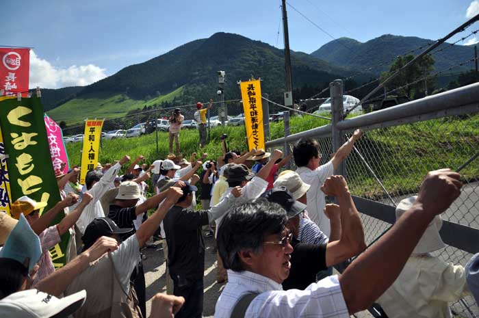 参加者たちはシュプレヒコールで気持ちをひとつにしたあと日出生台演習場の入り口付近で抗議集会を開いたほか防衛大臣への抗議文も提出したということです。http://www.tostv.jp/news/backnum.php