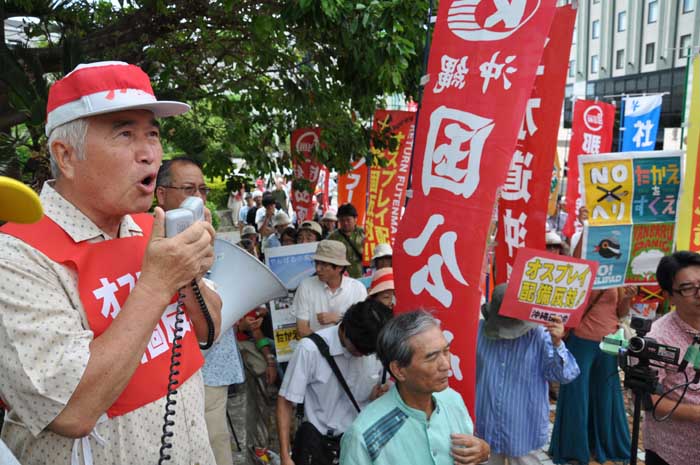 元宜野湾市長の伊波洋一さんが、オスプレイの普天間配備の問題点を語りました。