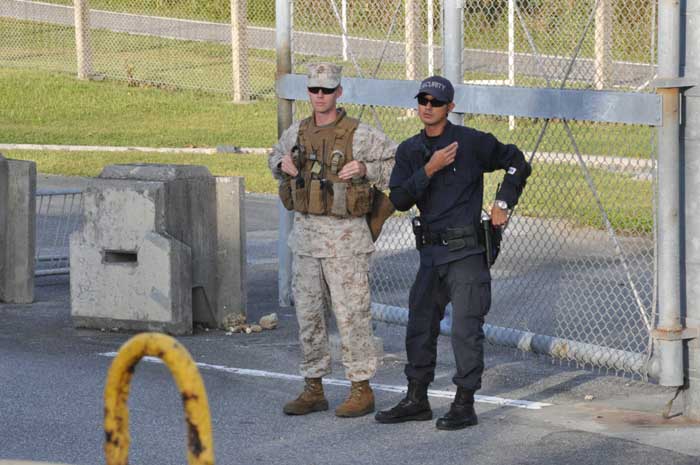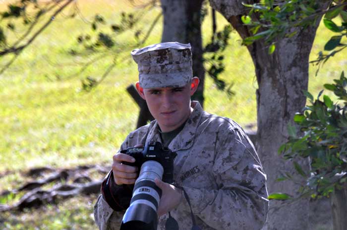●抗議行動への参加者を撮影する海兵隊員。 |