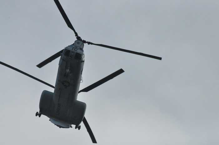 ●CH−46ヘリコプター。来年にはこの機が所属する飛行隊も、オスプレイに転換されます。 |